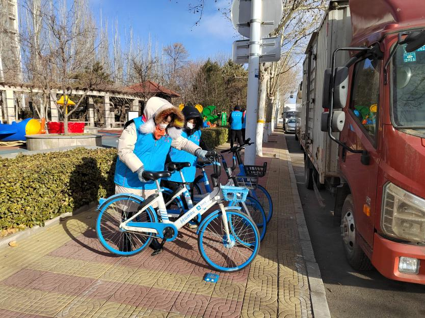 活动中,大家冒着寒风,手拿抹布、垃圾袋、夹子、指挥旗等工具,分工合作、井然有序,有的捡拾道路两侧垃圾、有的擦洗公共设施、有的码放共享单车、有的值守路口交通安全,纷纷创建文明城区助力添彩。